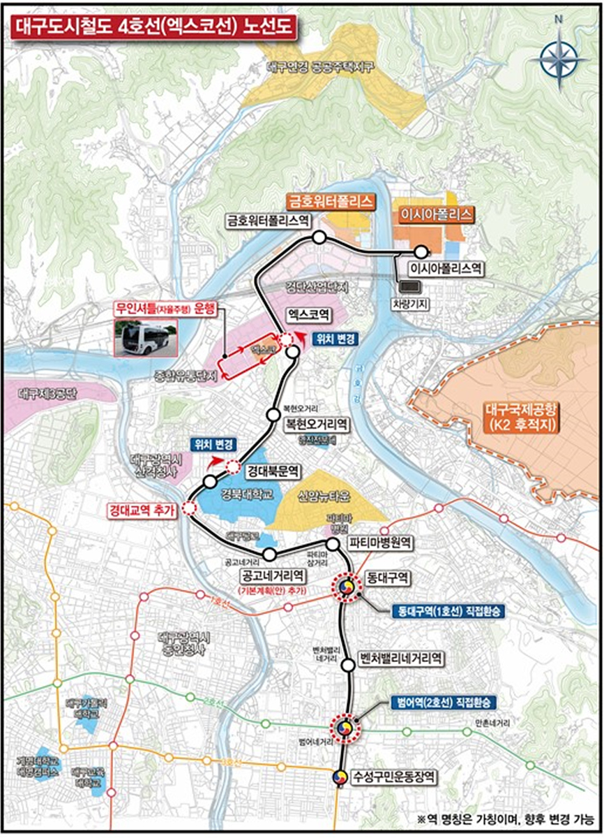 ▶ ‘엑스코선’ 노선명을 ‘도시철도 4호선’으로 변경