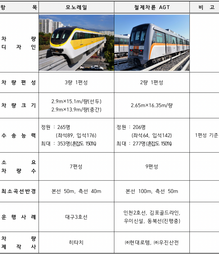 ▶ 차량시스템(모노레일→AGT) 변경, 정거장 1개소 추가(10개소→11개소) 등 포함