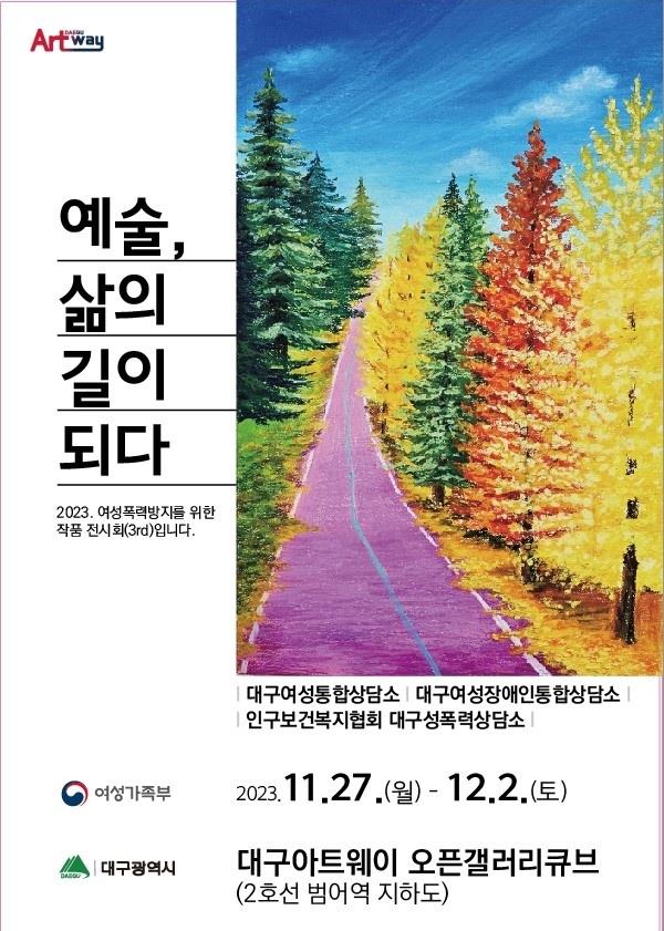 * ‘예술, 삶의 길이 되다’ 2023 여성폭력방지를 위한 작품전시회(장소 : 대구아트웨이 오픈갤러리큐브, 2호선 범어역 지하도)
