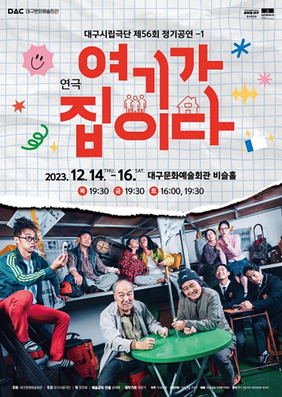 대구시립극단은 12월에 제56회 정기공연으로 소극장 연극 두 편을 연이어 선보인다. 첫 작품은 <여기가 집이다>로 12월 14일(목) ~ 16일(토) 대구문화예술회관 비슬홀에서, 두 번째 작품은 <모두의 남자>로 12월 21일(목) ~ 23일(토) 소극장 길에서 공연한다.