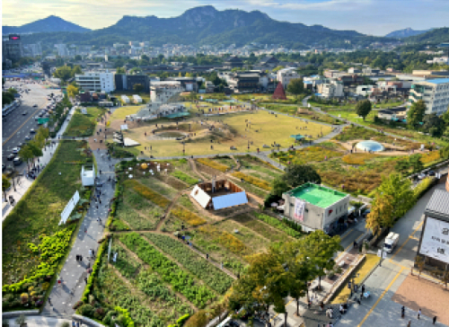 종로구 송현동에 위치한 ‘열린송현녹지광장(총면적 36,900㎡, 축구장 7,140㎡의 약 5배)’은 도심 속 드넓은 녹지공간으로 확 트인 녹색 경관을 연출하면서 문화가 어우러진 휴식과 힐링의 공간으로 역할을 하고 있다.