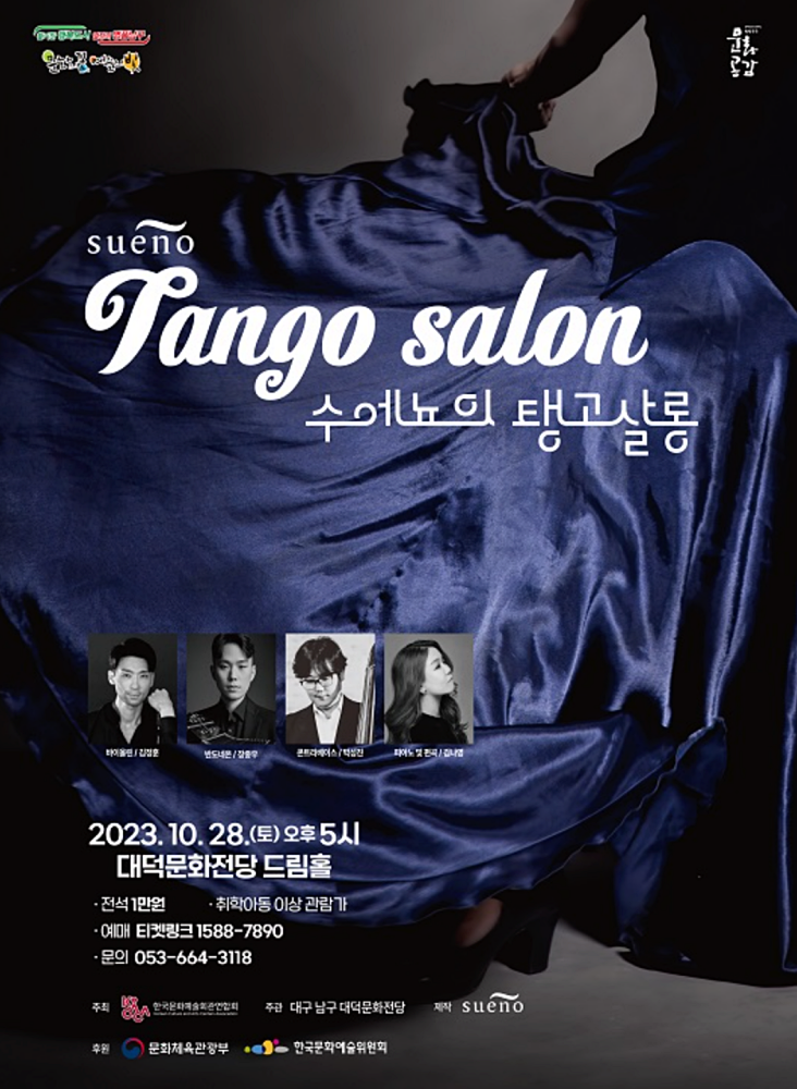 대구광역시 남구(구청장 조재구) 대덕문화전당이 낭만과 열정의 음악, 탱고 선율을 전할「수에뇨의 탱고 살롱」을 오는 10월 28일(토) 오후 5시 대덕문화전당 드림홀에서 개최한다고 19일 밝혔다.