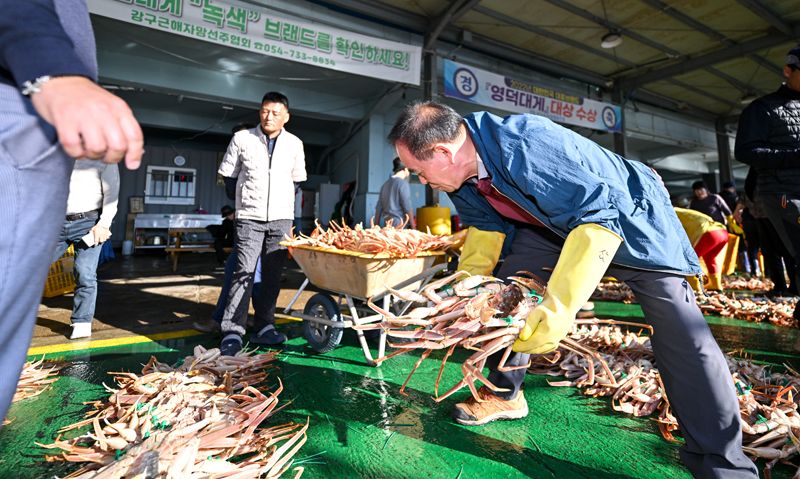 이날 경매 현장을 찾은 김광열 영덕군수는 김성식 강구수협장 등과 함께 어업인, 강구대게거리 상인, 중매인 등을 격려하고 영덕대게를 포함한 수산업 활성화에 대한 의견을 나눴다.