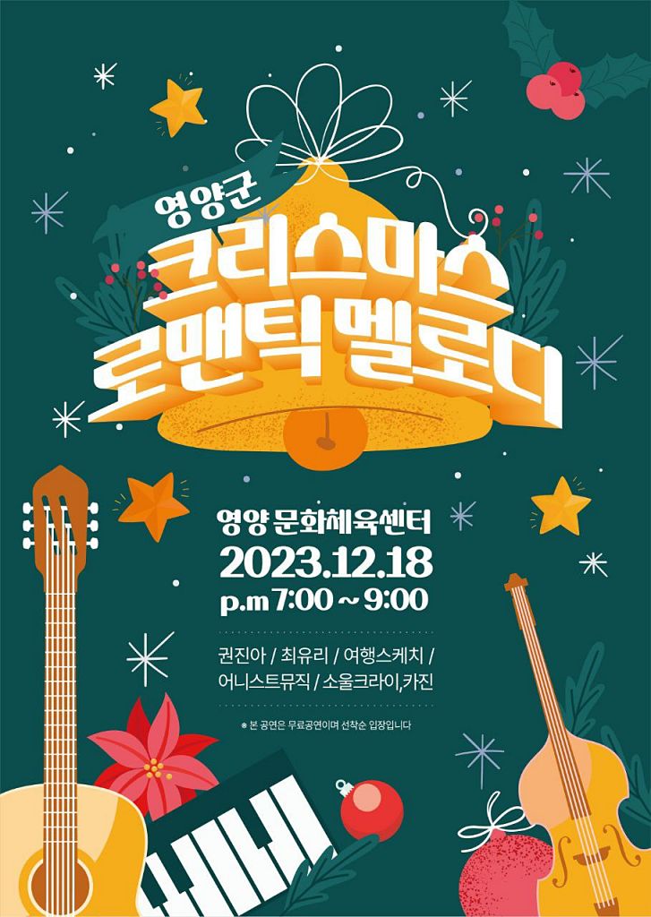 영양군에서는 「2023년 크리스마스 로맨틱 멜로디」를 12월 18일(월) 19시부터 영양군 문화체육센터에서 개최했다.