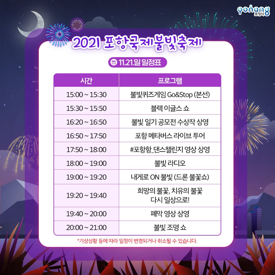 지난해 코로나19로 취소됐던 '포항국제불빛축제'가 오는 11월 20(토)일부터 21(일)까지 이틀간 북구 영일대해수욕장 일원에서 펼쳐진다.