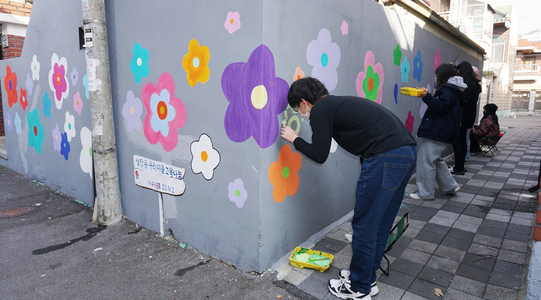 1학년 학생들과 교사들이 함께 주민들을 위한 나눔 활동을 의논하던 중 오래된 골목에 벽화를 그리고 마을의 요양 시설에 벤치를 만들어 기부하기로 했다. 해마다 조금씩 변해가는 골목을 본 주민들은 아낌없이 격려와 칭찬을 하고 있으며 집 앞 담장에 그림을 그려 달라는 요청이 늘고 있다. 행정복지센터를 통해 주변 요양 시설에 전달된 벤치는 어르신들에게 편안한 휴식처가 되었다.