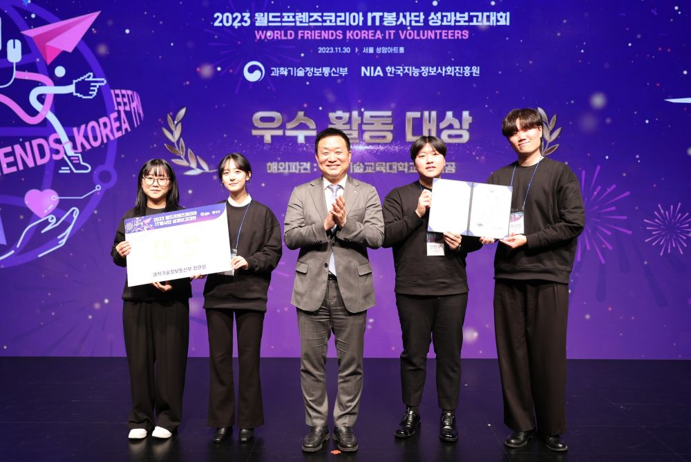 한국지능정보사회진흥원(원장 황종성, 이하 NIA)은 11월 30일(목) 130여명의 IT봉사단원 등과 함께 ‘2023년 월드프렌즈코리아 IT봉사단* 성과보고대회(이하 성과보고대회)’를 개최했다고 밝혔다.