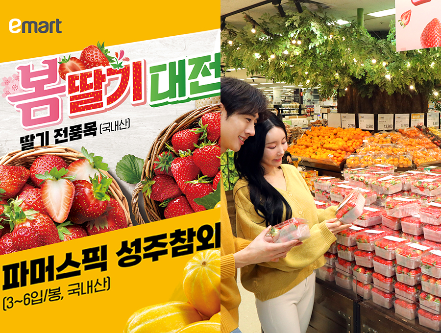 이마트가 오는 8일(금)부터 14일(목)까지 봄철 인기 과일인 봄딸기 전품목 및 햇참외 첫 시즌행사를 통해 과일 구매 부담 완화에 나선다.