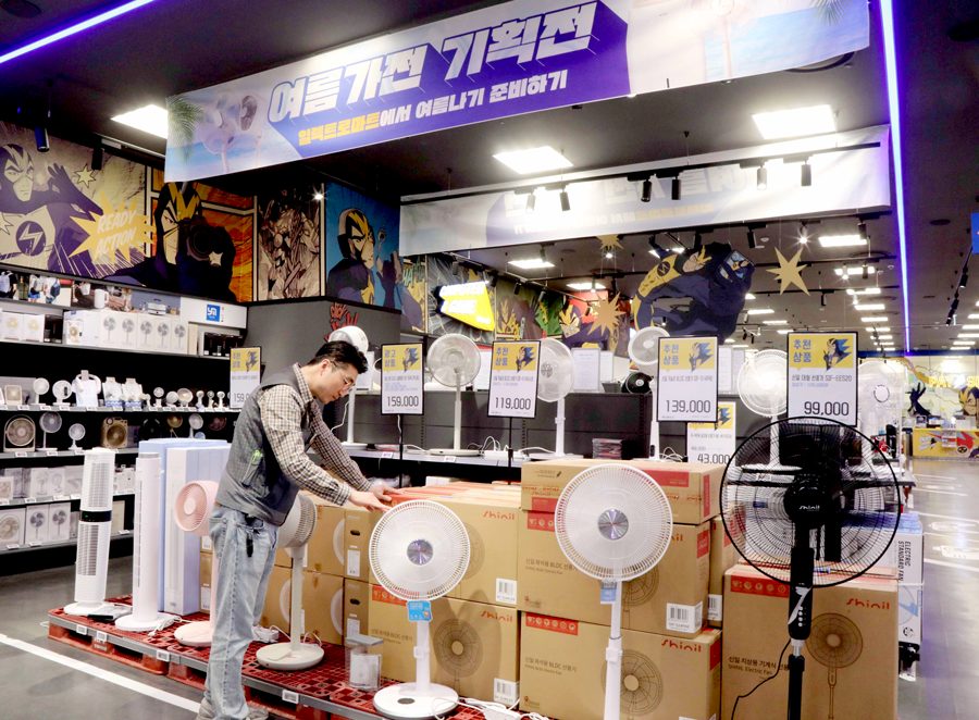 이마트에 따르면 지난 4월부터 에어컨, 선풍기 등 수요가 늘면서 4~5월(4/1~5/9) 여름 냉방가전 매출이 전년 같은 기간보다 30% 상승했다. 그 중 에어컨은 35%, 선풍기는 40% 매출이 뛰었다.