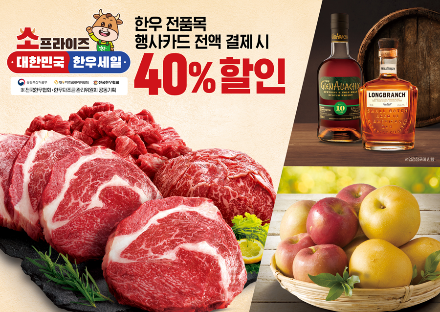 먼저 이마트는 농림축산식품부, 전국한우협회, 한우자조금관리위원회와 함께 ‘소프라이즈 2024 대한민국 한우 세일’을 진행한다. 한우 전품목을 대상으로 행사 카드 결제 시, 40% 할인이 적용된다.