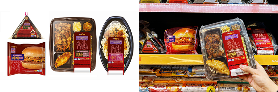 이번 협업 상품은 ‘오락가락 연애하지 마라 닭갈비 도시락(5500원)’, ‘말리는 연애하지마라 닭갈비 파스타(4500원)’, ‘버거운 연애하지 마라 버거(2800원)’, ‘삼각 연애하지마라 삼각김밥(1400원)’으로, 젊은 층 사이에서 인기를 끌고 있는 마라 맛 트렌드를 반영했다.