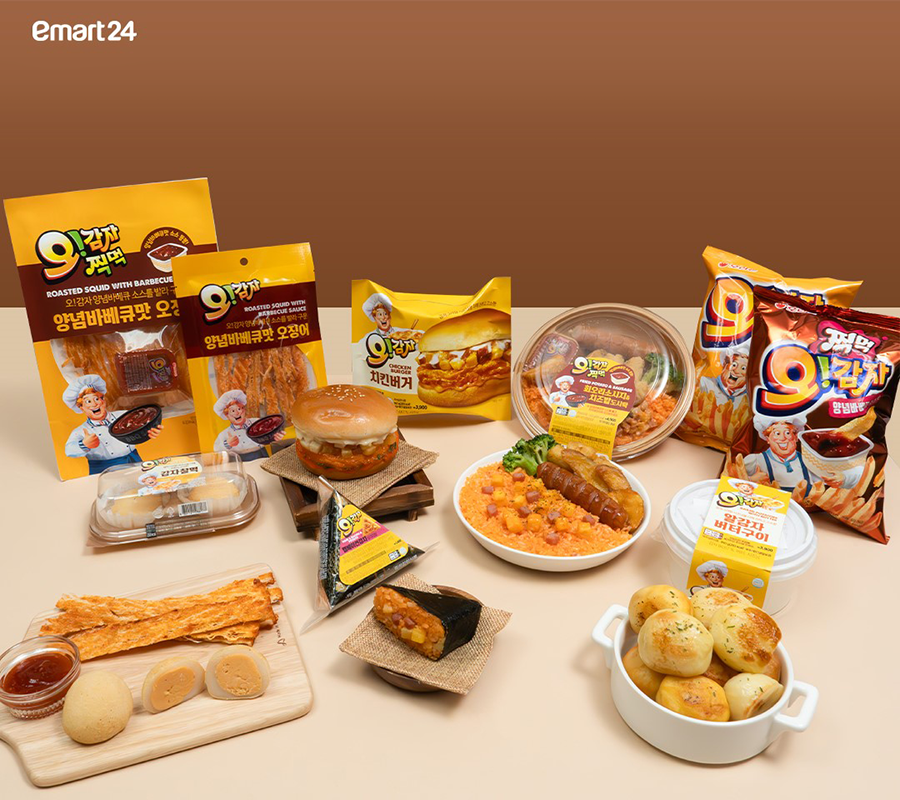 이마트24가 이번에 오!감자와 협업해 판매하는 상품은 ▲오!감자 양념바베큐맛오징어(3900원) ▲오!감자 회오리소시지&치즈밥(4900원) ▲오!감자 햄베이컨감자삼각김밥(1400원) ▲오!감자 감자찰떡(3300원) ▲오!감자 치킨버거(3900원, 오는 12일 출시 예정) ▲오!감자 알감자버터구이(3900원, 오는 19일 출시 예정) ▲오!감자 찍먹양념바베큐오징어(4900원, 오는 28일 출시 예정)등 총 7종이다.
