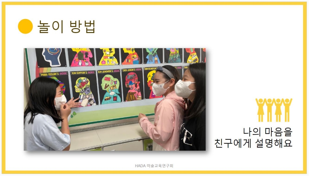 ▲미술인성놀이 「가치를 담고 마음을 나누는 미술놀이」는 인성 가치․덕목과 연계한 미술놀이 자료로 총 21편으로 구성됐다. 나의 마음 속 이야기를 담아 내면의 자화상을 그리는 ‘마음을 그리다’, 협동의 의미를 알고 ‘같이’의 가치를 깨닫게 하는 ‘교실을 누비는 고래’, 최선을 다하는 자세와 타인을 존중하는 자세를 배우는 ‘구김을 채우는 마음’ 등이 있다.