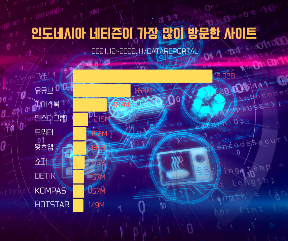 2022년 인도네시아 네티즌이 가장 많이 방문한 사이트 TOP 10