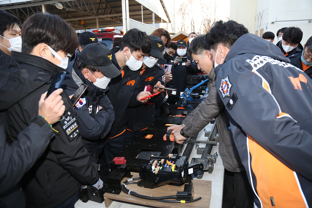 도입된 장비에 대한 특별 교육은 배치 부서 대원 등 30여 명을 대상으로 ▲ 전기차 관련 기본 지식 및 화재진압 시 안전 확보 방안 ▲ 전기차 화재대응 장비별 특징 및 조작·숙달 ▲ 전기차 화재 사례 교육 및 연찬을 통한 지식 공유에 중점을 두고 진행했다.