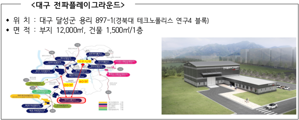 대구광역시는 지역 중소기업의 전파 관련 제품 개발을 지원하는 ‘전파플레이그라운드-대구’ 착공식을 경북대학교 현풍캠퍼스(달성군 용리 897-1)에서 5월 30일(화)에 개최한다.