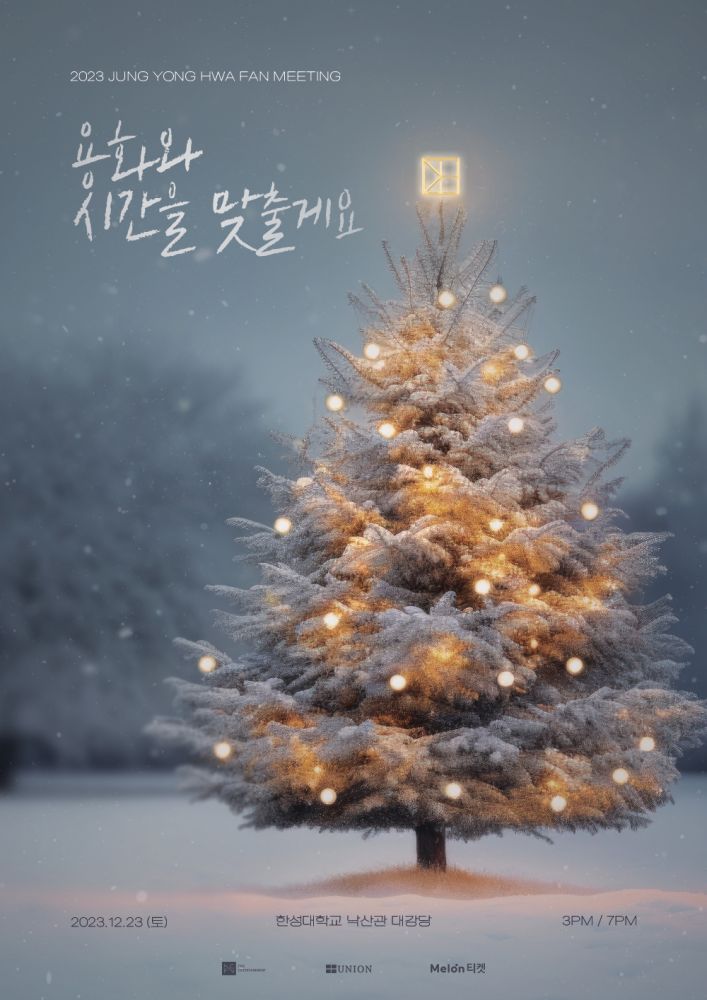 씨엔블루 정용화가 크리스마스를 맞아 특별한 팬미팅을 선물한다. 정용화는 오는 12월 23일 오후 3시와 7시 총 2차례에 걸쳐 서울 성북구 한성대학교 낙산관 대강당에서 기획사 유니온픽처스가 주최한 크리스마스 팬미팅 ‘용화와 시간을 맞출게요’를 개최한다.