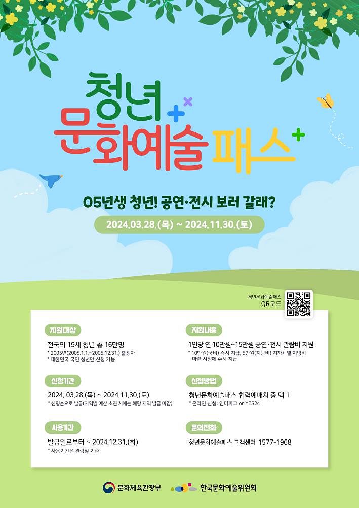 경상북도는 28일부터 성년기에 진입한 청년에게 문화예술 경험 기회를 제공하고, 적극적 문화소비 주체로 활동하도록 지원하는 청년 문화예술패스 지원사업을 시작한다.