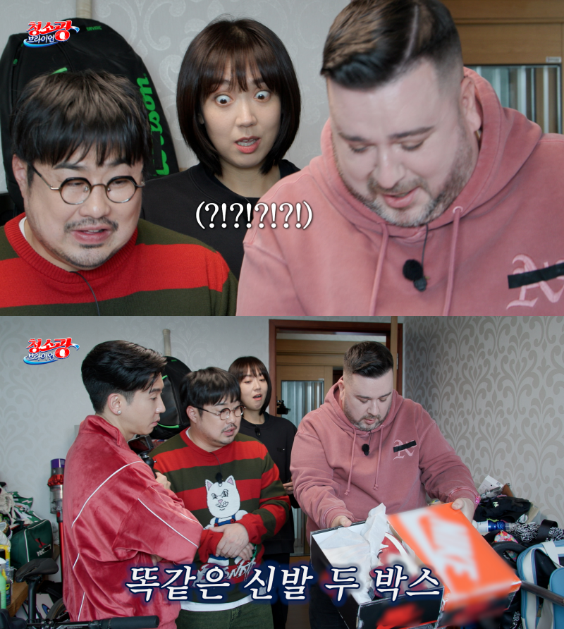 우선 수백 켤레의 신발과 천만 원짜리 자전거 등등, 갖가지 취미 용품들로 가득 찬 방의 청소를 의뢰한 이은형?강재준의 ‘하비 하우스(Hobby House)’. 이은형?강재준 부부는 앞으로 태어날 2세 ‘깡총이’를 위해 방을 만들어 주고 싶다며, 강재준의 취미 용품이 쌓인 방 정리를 의뢰한다. 두서없이 가득 쌓인 물건들과 꽤나 핫(?)한 두 사람의 라이프스타일에 브라이언은 경악을 금치 못했다는 후문이다.