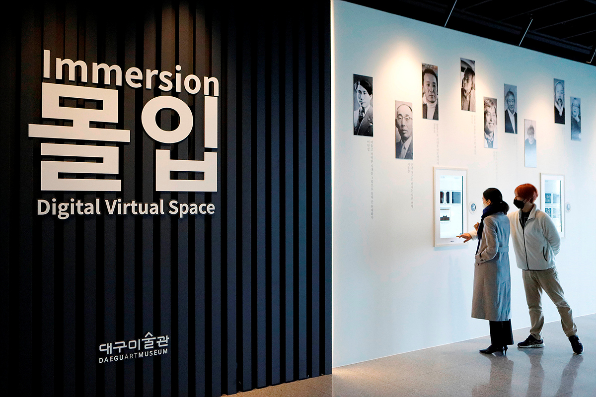 ‘디지털 가상공간-몰입’은 대구미술관 소장품 중에서 대구미술의 지역성과 역사성, 현대적 실험성을 상징하는 작가 15명의 47점을 연구해, 6편으로 제작한 실감 영상이다. ‘몰입’은 당일 선착순, 시간대별로 현장 신청받는다.