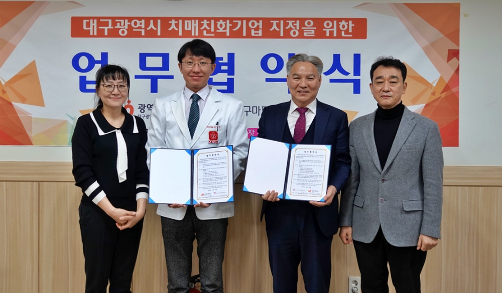대구시와 대구마트유통협동조합은 2. 20.(월) 15:00, 칠곡경북대학교병원에서 대구광역시 치매친화기업 첫 업무협약을 체결했다.