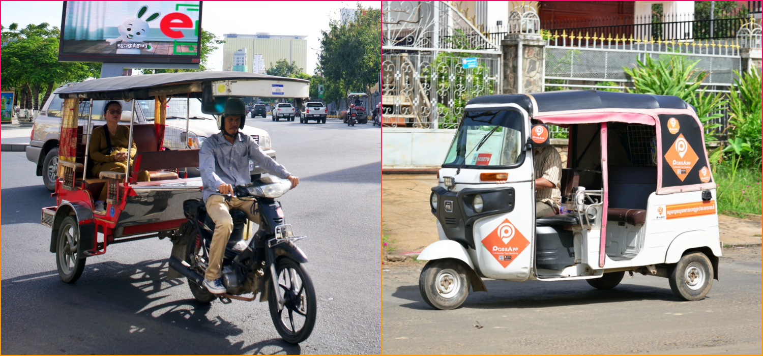요즘은 택시를 이용할 때 카카오택시나 티머니온다, 우티 등 다양한 택시앱을 일상적으로 사용한다. 한국과 마찬가지로 캄보디아에서도 그랩, 패스앱, 타다 등 다양한 호출앱을 사용할 수 있다.