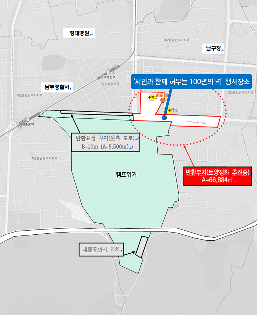그동안 대구시는 해당부지를 남부권 발전의 핵심 거점으로 활용하겠다는 구상을 가지고 국방부 및 주한미군과 적극적으로 협상해 2020년 12월 반환에 합의하는 성과를 이뤘다.