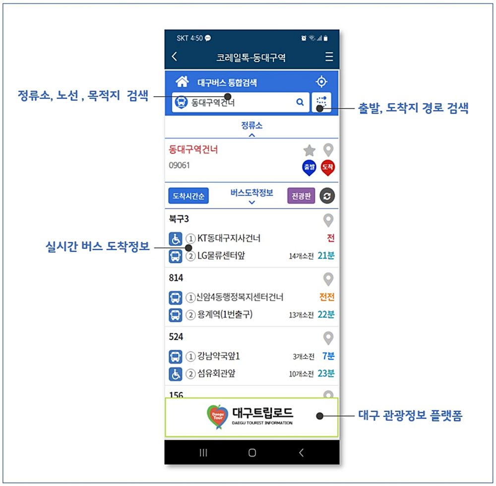 동대구역을 비롯한 대구광역시의 3개 철도역 인근 버스정류소를 이용하는 버스 승객은 하루 평균 약 1만 4천 명에 달하며, 이번 서비스로 인해 이들이 더욱 쉽게 대중교통정보를 활용할 수 있게 됐다.