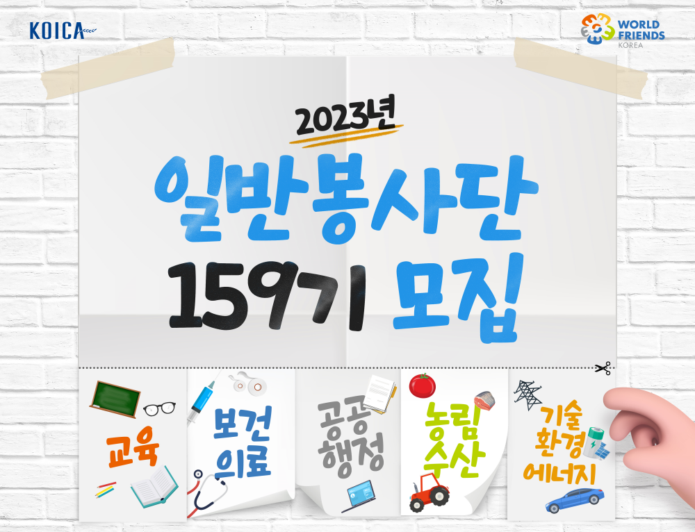 한국국제협력단(KOICA)은 개발도상국의 지속가능한 개발과 발전을 위해 활동할 2023년 3차 코이카 해외봉사단(159)를 모집한다고 밝혔다.