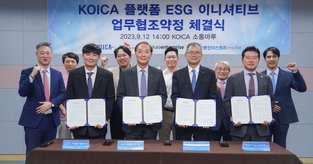 체결식에는 장원삼 코이카 이사장, 홍석화 코이카 사업전략·파트너십본부 이사를 비롯해 SK에코플랜트 이대혁 Global Eco BU 대표, 카카오엔터프라이즈 이경진 대표이사, 코오롱인더스트리FnC부문 대표이사 유석진 사장 등 국내 대기업 관계자들이 참석했다.