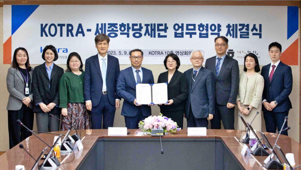 세종학당재단과 대한무역투자진흥공사(이하 KOTRA)가 효과적인 해외 외국인 한국어·한국문화 보급과 이를 통한 국내․외 기업의 글로벌 사업 지원을 위한 업무협약을 체결했다.