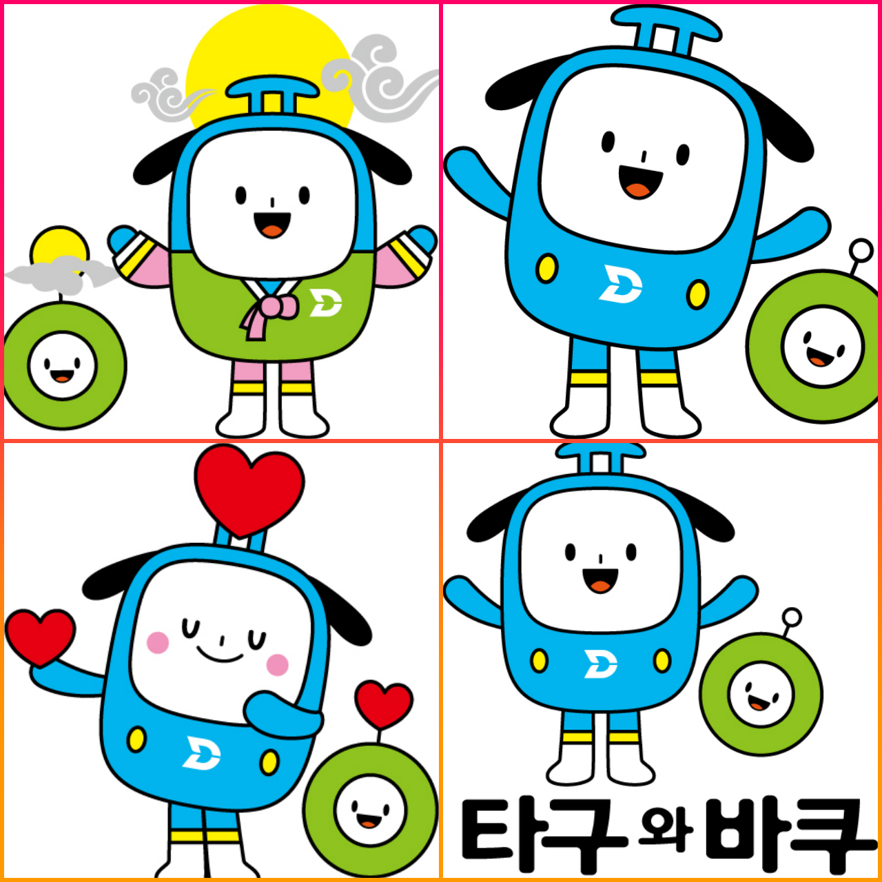 이번에 새롭게 선보이는 공사의 공식 캐릭터 이름은「타구와 바쿠」다. 캐릭터는 대구 시민의 안전한‘발’로써 고객을 섬기고 아끼는 공사의 마음을 충직한 강아지와 바퀴를 모티브로 개발됐다. 「타구」는‘타다’와‘대구’를 결합했고,「바쿠」는‘바퀴’의 사투리에서 아이디어를 얻어 이름 지었다.