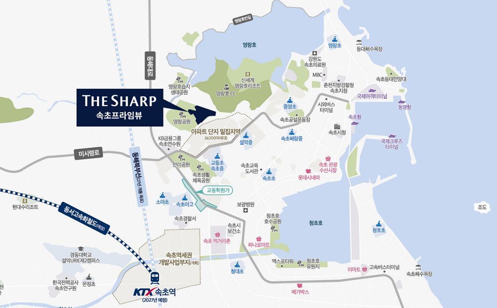 교통환경도 우수하다. 속초 시외버스 터미널, 속초항 여객터미널, 국제 크루즈 터미널 등이 인접해 있으며, 56번 국도, 동해대로를 통해 강릉, 양양, 고성 등 주요 지역을 손쉽게 오갈 수 있다. 특히, 2027년 ‘춘천-속초를 잇는 동서고속화철도(KTX)와 동해북부선이 개통되면 교통은 더욱 편리해질 것으로 예상된다. KTX 속초역이 개통되면 용산에서 속초까지 75분이면 이동이 가능해질 것으로 보여진다.