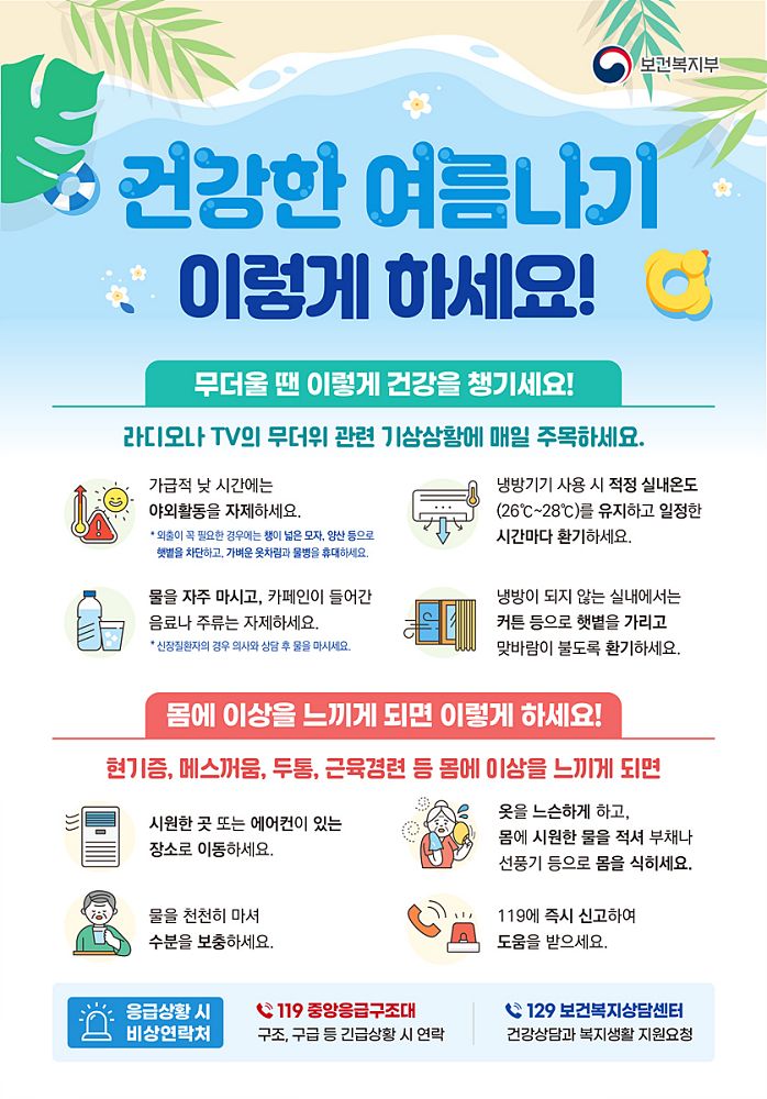 정의관 대구광역시 보건복지국장은 “폭염에 따른 피해가 발생하지 않도록 구·군과 함께 취약노인 보호대책 이행현황을 계속 모니터링할 것이다”며, “어르신들께서는 폭염특보 발령 시 야외활동을 자제하고 충분한 물 마시기와 휴식으로 건강관리에 유의해 주시길 당부드린다”고 말했다.