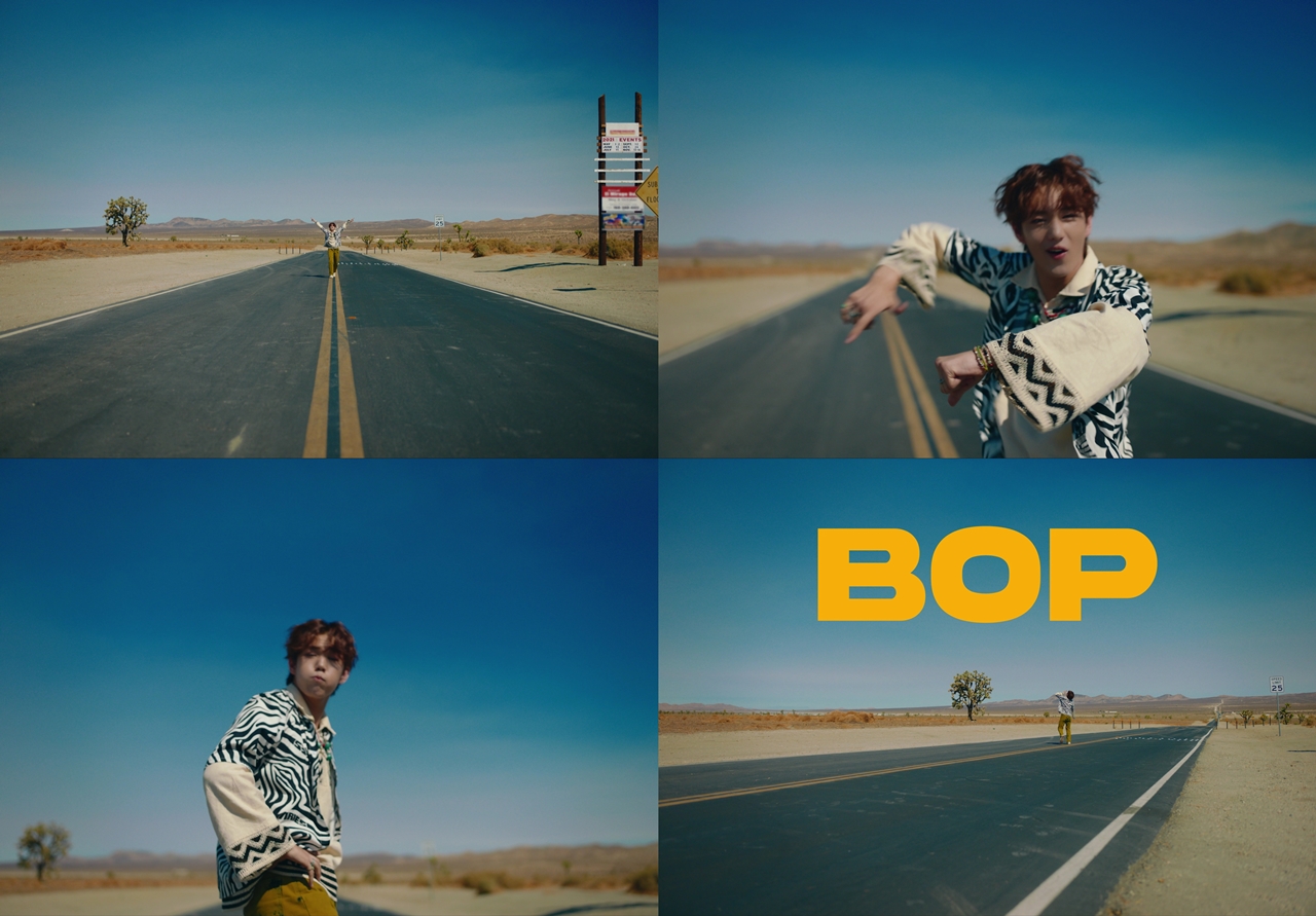 공개된 영상 속 인탁은 수록곡 ‘Bop’에 맞춰 질주하듯 파워풀한 퍼포먼스를 선보여 눈길을 사로잡는다. 드넓은 도로를 배경으로 인탁은 바닥에 그려진 선을 넘나들며 패기 넘치는 자유로움을 춤에 담아냈다. 이어 음료수를 마시는 듯한 제스처로 퍼포먼스를 마무리하며 청량한 매력까지 자랑했다.