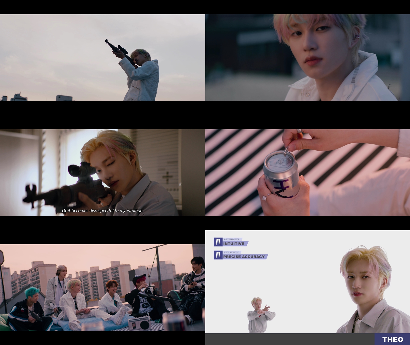 그러나 곧이어 깜짝 반전이 등장하며 분위기가 전환된다. "어차피 100% 명중이니까"라는 테오의 말이 끝남과 동시에 테오는 음료수 캔 뚜껑을 따는 데에 실패하며 머쓱해 한다. 이어 멤버들이 새로운 음료수를 건네줬지만, 처음과 달리 자신감이 없는 듯 "따줘"라고 하며 귀여운 모습으로 분위기를 반전시킨다. 이러한 현실적이면서도 유머러스한 모습이 재미를 배로 더한다.