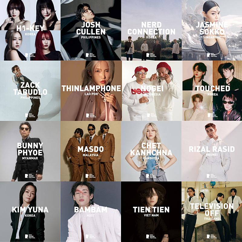 이번 ‘2024 ROUND in KOREA’의 국내 뮤지션 라인업으로는 최근 복면가왕 최다연승인 9연승을 기록하며 화제를 모으고 있는 윤민이 보컬로 있는 밴드 터치드와 MZ대세 밴드 너드커넥션, 역주행의 아이콘 하이키가 공개되었으며, Rizal Rasid (브루나이), Chet Kanhchna (캄보디아), Masdo (말레이시아), Bunny Phyoe (미얀마), Thinlamphone (라오스), Zack Tabudlo (필리핀), Nogei (인도네시아), Jasmine Sokko (싱가포르)도 참가를 확정하였다. 특별히 이번 공연에서는 하이키와 SB19의 Josh Cullen (필리핀)이 콜라보 무대를 선보일 예정이어서 기대를 모으고 있다.