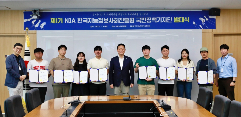 한국지능정보사회진흥원(이하 NIA)은 7월 3일(월) NIA 대구본원 대회의실에서 올해 처음 구성된 ‘제1기 NIA 국민정책기자단(이하 기자단)’의 발대식을 개최하고 본격적인 활동에 들어간다고 밝혔다.