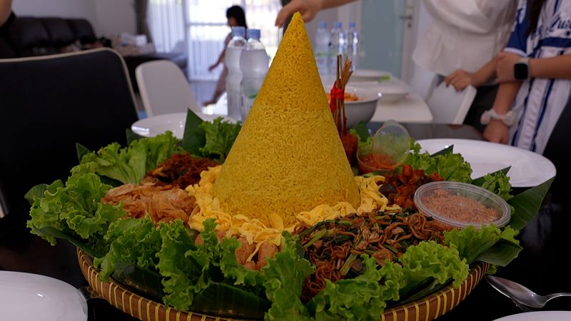 인도네시아의 집들이는 어떤 모습일까? 오늘은 가족의 이사 기념 집들이 날. 익숙한 듯 반갑게 인사를 건네는 손님들로 새집은 어느새 북적거린다. 가장 먼저 새집을 구경하며 함께 식사를 기다리는 모습이 한국과 다르지 않아 보이는데. 하지만 식탁에 올라온 낯선 음식. 바로 행운을 상징하는 요리 ‘나시 쿠닝(Nasi Kuning)'이다. 손님을 불러 함께 행운의 요리를 먹고, 새집에 좋은 기운이 오기를 기원하는 인도네시아의 집들이 문화를 소개한다.