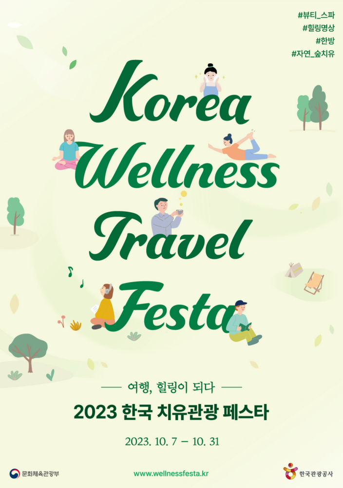 문화체육관광부(이하 문체부)는 한국관광공사, ‘올해의 웰니스관광 도시’ 정선군과 함께 국내외 관광객들이 치유(웰니스) 관광지에서 몸과 마음을 회복할 수 있도록 10월 7일(토)부터 31일(화)까지 ‘2023 한국 치유관광 페스타’를 개최한다.
