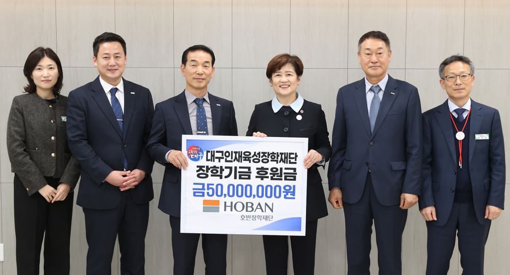 대구시교육청은 12월 11일(월) 호반장학재단(이사장 김상열)에서 지역인재 장학금 5천만 원을 대구인재육성장학재단에 기탁했다고 12일(화) 밝혔다.