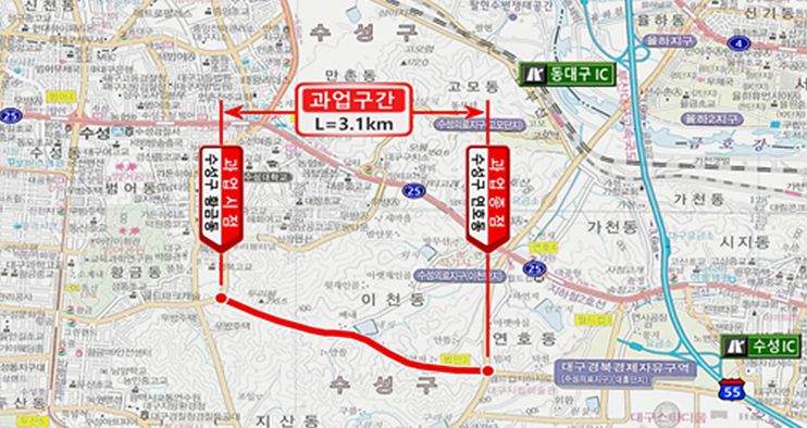 ※ 교통량 변화 : 달구벌대로 25%(82,098대 → 61,675대), 범안로 24%(66,565대 → 50,824대)