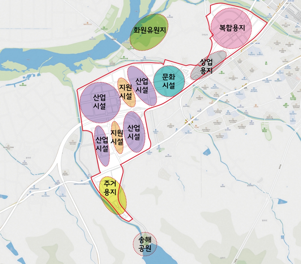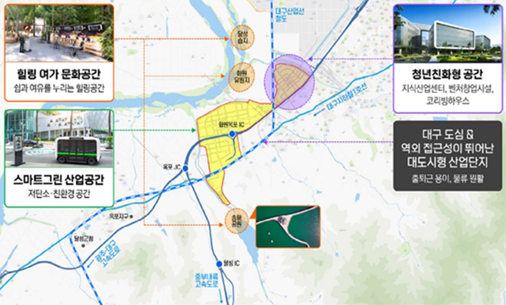성서산단과 인접한 동쪽 지역은 지식서비스업 위주의 복합용지, 화원유원지 근처의 중심부는 상업·문화시설로 구성한다. 제조용 산업시설은 서쪽에 중점 배치하고 송해공원과 인접한 남쪽은 공동주택 등 주거용지로 조성할 계획이다.