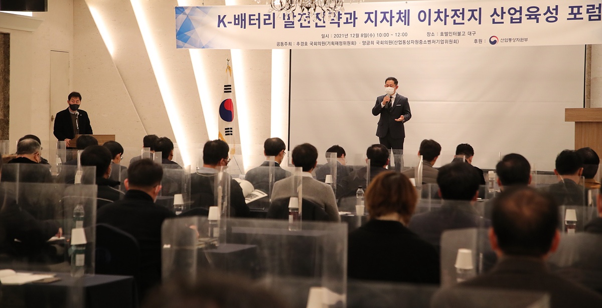 'K-배터리 발전과 지자체 이차전지 산업육성 포럼'이 12월 8일(수) 오전 10시 인터불고호텔에서 이차전지 관련 기업과 대학, 전문가들이 참석한 가운데 개최됐다.