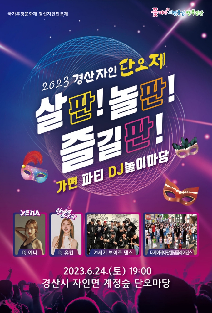 경산시를 대표하는 전통문화축제 「2023 경산자인단오제」가 오는 22일부터 24일까지 자인면 계정숲 일원에서 3일간 개최된다.