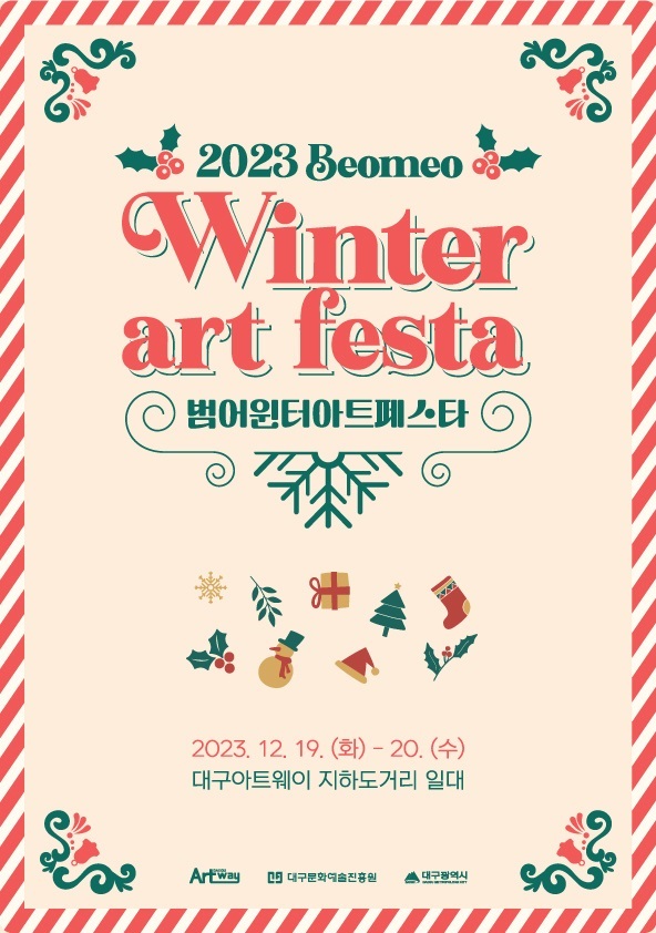 대구문화예술진흥원(이하 ‘진흥원’)이 운영하는 대구아트웨이는 12월 19일(화)부터 12월 20일(수)까지 2023 범어윈터아트페스타를 범어 지하도 전 구간에 개최한다.