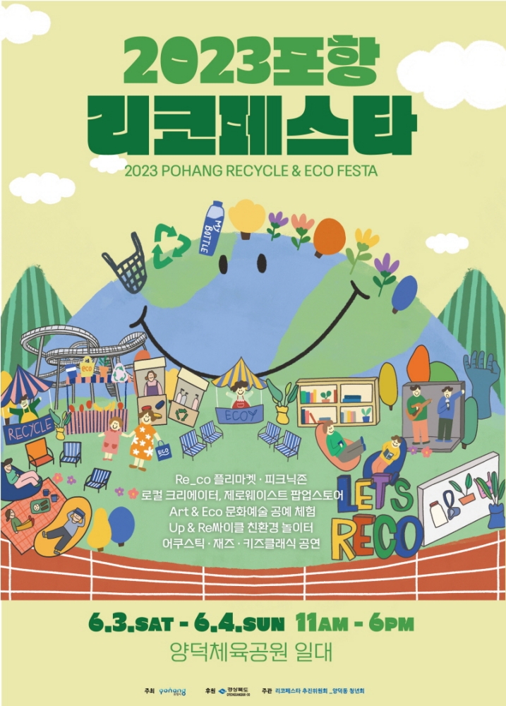 이번 ‘리코페스타’는 지난 1월 포항시가 경북도 미색(微色, 작지만 색깔있는) 축제 공모에 선정된 사업으로, 자원순환의 리사이클(RECYCLE)과 친환경을 담은 에코(ECO)를 결합한 경북 최초 시민주도형 친환경축제로 열린다.