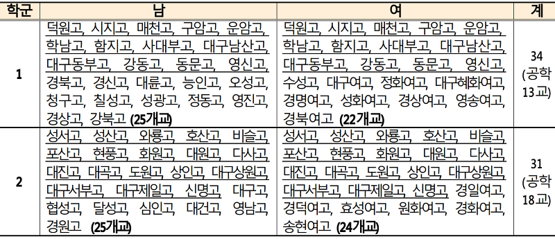 추첨배정고등학교 입학예정자 배정고교 발표는 2월 1일(목) 11시 30분부터 해당 중학교에서 발표하며, 대구진학진로정보센터 누리집(www.dge.go.kr/jinhak)*에서도 확인할 수 있다. 예비소집은 오는 2월 5일(월) 배정된 고등학교별로 자율적으로 실시할 예정이다.