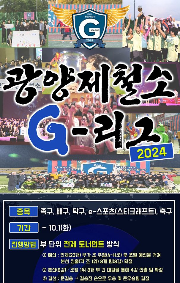 앞서 지난해 처음으로 개최됐던 ‘2023 광양제철소 G-리그’가 조직 분위기에 활력을 불어넣었다는 평가를 받은 데에 따라 광양제철소는 올해에도 직원들 간 유대감을 고취시키고 사기를 진작시키기 위해 다시 한번 ‘G-리그’를 진행하게 됐다.