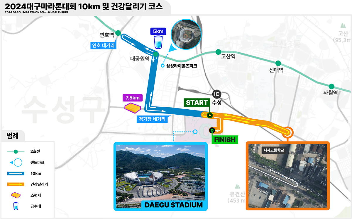 올해 대회까지는 국채보상공원에서 시작해 도심을 세 바퀴 도는 루프코스에서 개최됐으나, 반복 구간의 지루함 등 시민의 다양한 의견을 수렴해 내년 대회부터는 육상의 메카인 대구스타디움에서 시작해 시내 전역을 한 바퀴 도는 순환코스로 코스안을 재설계했다.